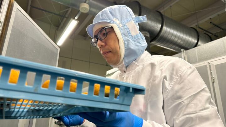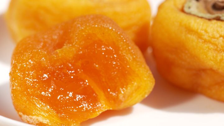 最後は、パフェに乗っている干し柿の一種、あんぽ柿の物語。真壁さんが「糖度とねっとり感が最高ですね」と話したあんぽ柿。そのおいしさのヒミツは水分量にある。あんぽ柿製造者の的場さんは「水分量を30~40%にすることによって、旨さや甘さをベストな状態にしています」と教えてくれた。