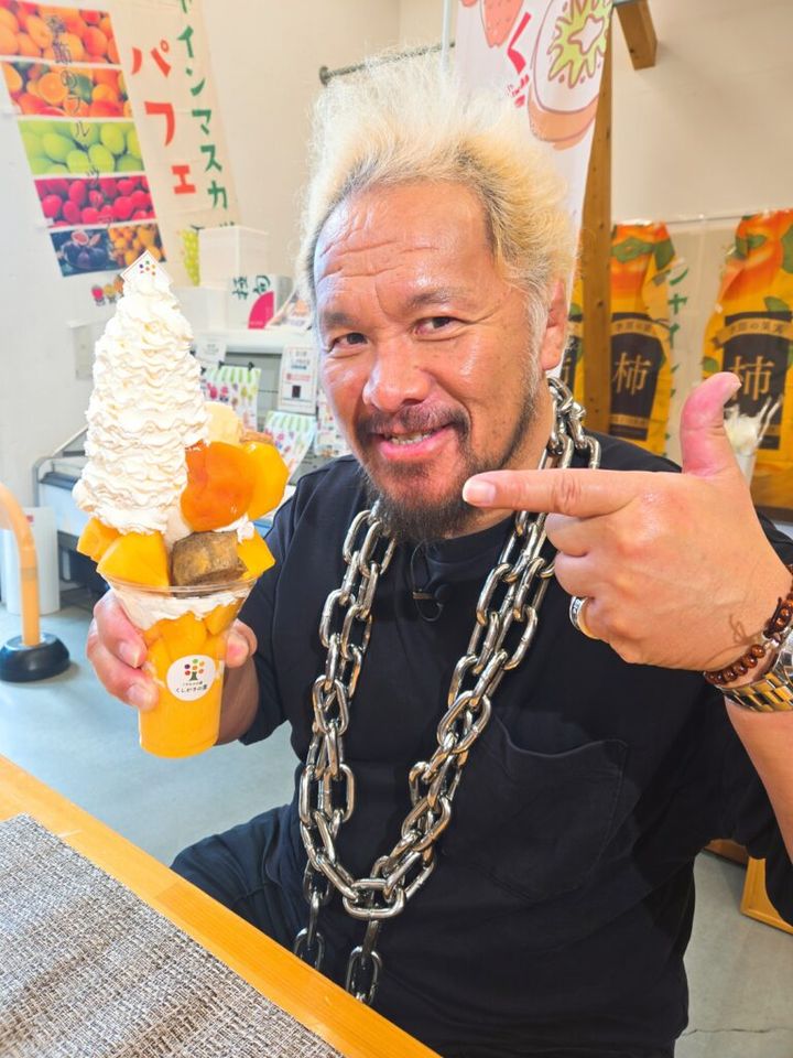 甘党プロレスラーが和歌山県かつらぎ町で“くだもの農家の柿パフェ”に出会った! おいしさのヒミツを「知れば知るほど幸せになれる。パーフェクト!」
