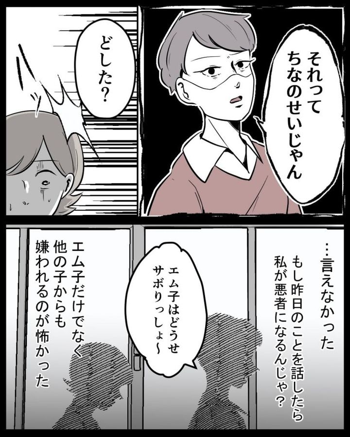昨日、エム子とちなきちさんが一緒に勉強していたことを知っている教師から、ちなきちさんは「昨日、何かあったのか?」と聞かれてしまう。