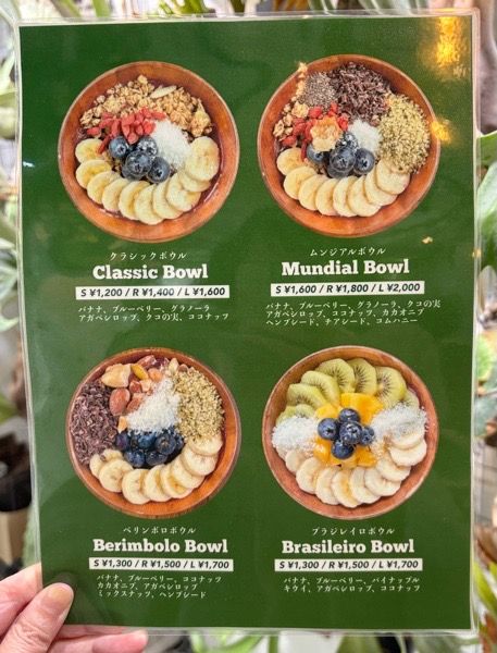 アサイーボウルのメニューはこちら。