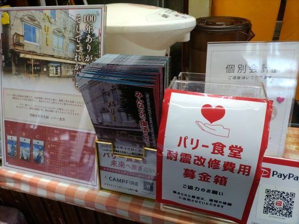 この大切な空間を守るため、パリー食堂は未来を共にする地域の人々や観光客に向けて、支援を呼びかけています。 建物の耐久工事費用をクラウドファンディング(12/31まで)で募集中であるほか、店内でも募金箱を通じて直接支援が可能です。 支援の詳細は、HP・Instagram・TikTokなどでも配信中。