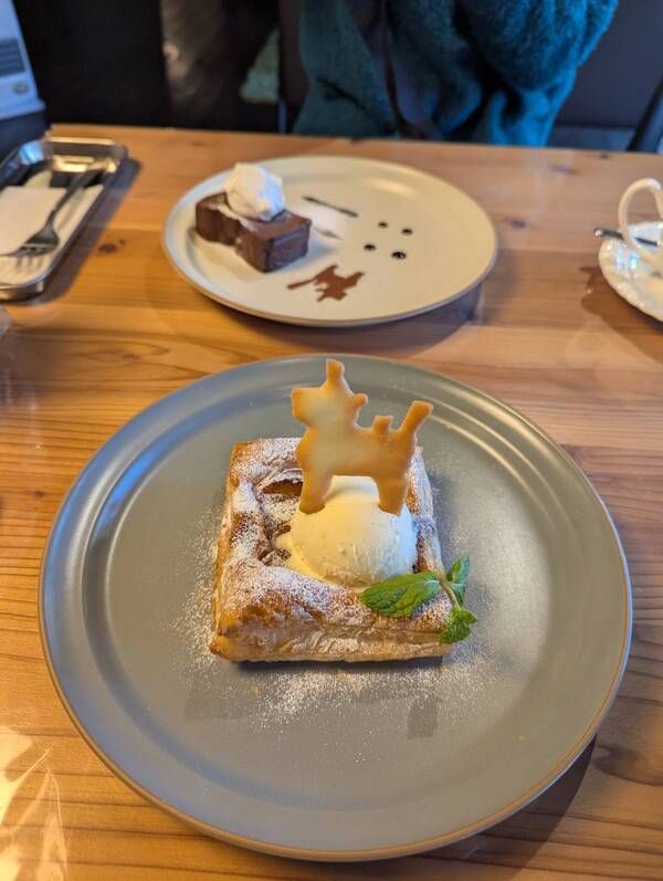 ガトーショコラにはお皿の中に、アップルパイにはクッキーにかたどった「三春駒」が!