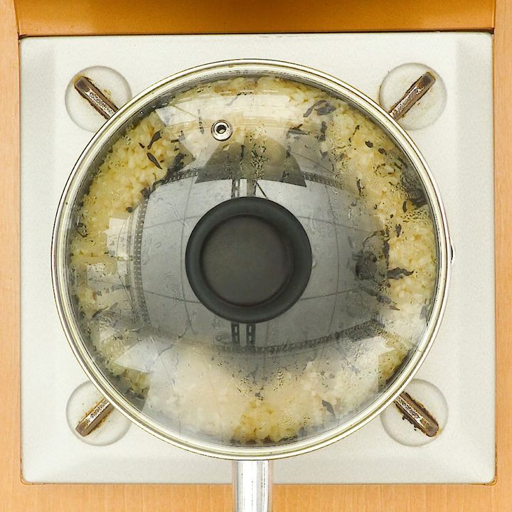 3.10分程炊飯して、火を止め、ふたをしたまま10分蒸らす。