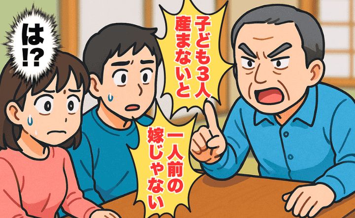 3. 「3人産まないと一人前の嫁じゃない」は…?謎ルール押し付ける義父。地元ママに聞いた田舎の常識に絶句!