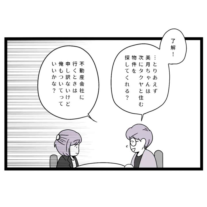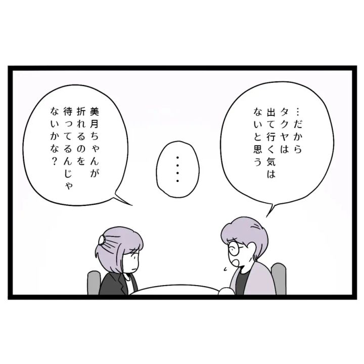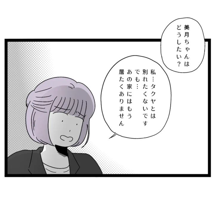 すると、「美月ちゃんはどうしたい?」そう聞かれ、「私・・タクヤとは別れたくないです。でも・・あの家にはもういたくありません」と伝えました。