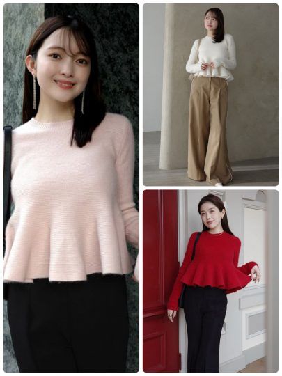 冬から春まで楽しめるペプラムニット