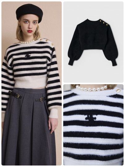 ポイントはコンパクトなクロップド丈とボリューミーな袖とのバランス感。ウエストラインがすっきり見えるリブ編み仕立てのニットで、スタイルアップ効果もお手のもの。無地のホワイトとブラック、そしてカジュアルにも転がしやすいボーダーの3色展開です。