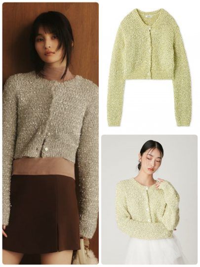4種類の糸を織り込んだ華やかカーデに注目