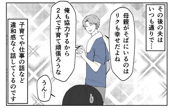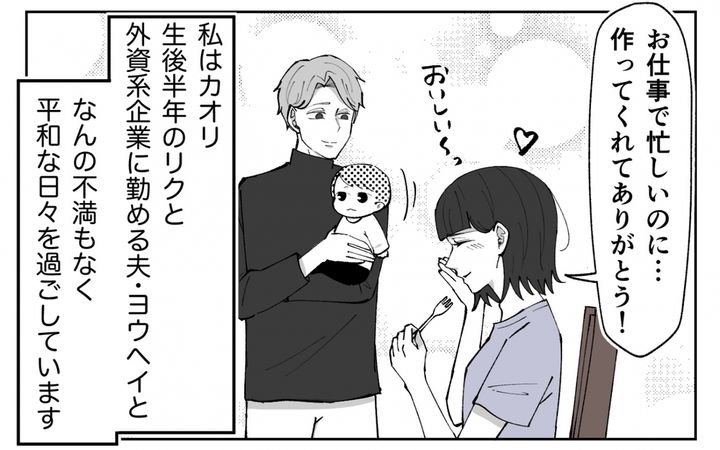 カオリは生後半年の息子と夫の3人暮らし。夫とは友人の紹介で、頼りがいのあるところを好きになりました。子どもが産まれてからもこの幸せな生活が続くと思っていたのですが、突然夫が赤ちゃん返りのように甘えてきて…!?