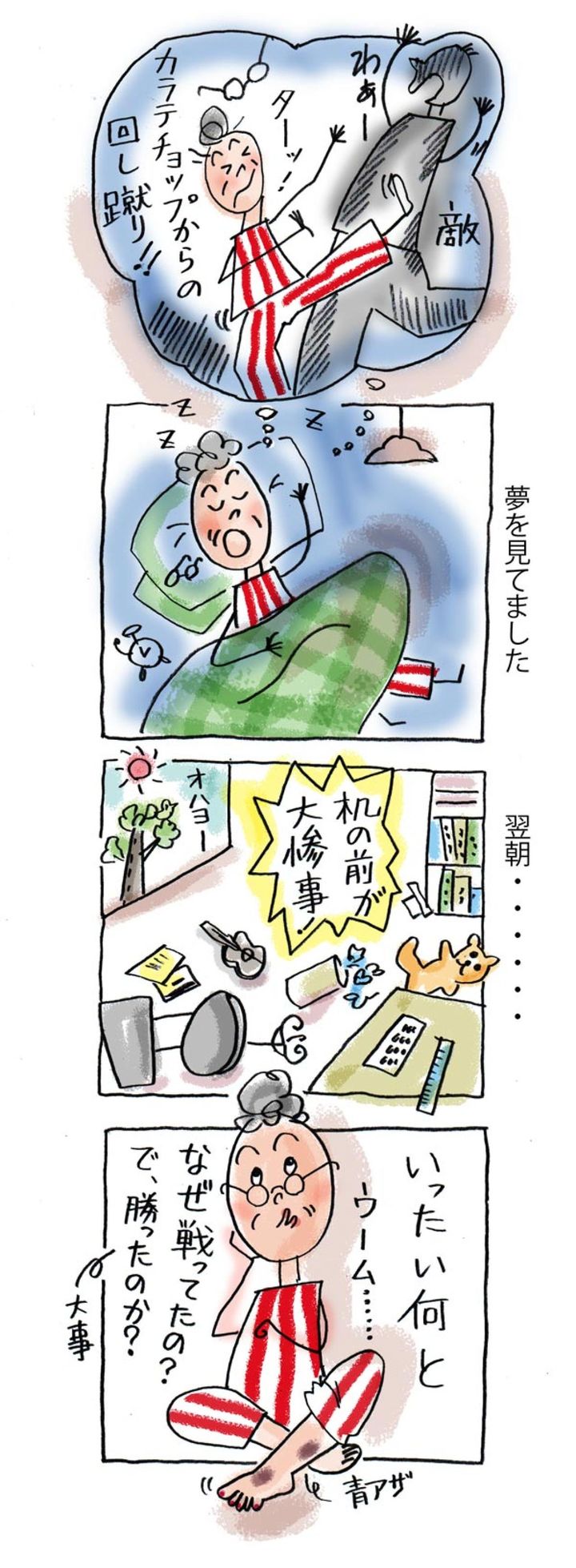 2. 70歳イラストレーターが夢の中で回し蹴り!朝起きたら……!?【ほのぼのマンガ】本田葉子さん