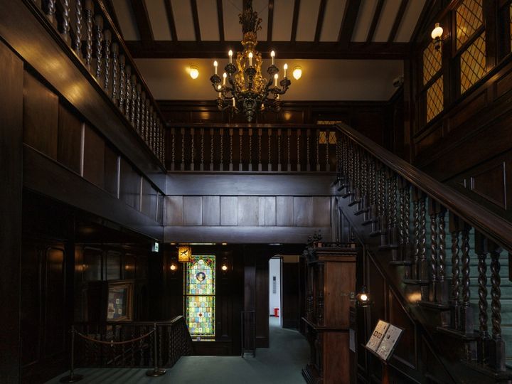 その後、約20年もの歳月をかけて完成させた英国スタイルの山荘は、天王山の自然と美しく調和する理想的な住まいになりました。大正時代から昭和初期にかけての洋風建築としての文化的価値も高く、平成16年(2004)には本館をはじめとする6つの建造物が国の文化財登録を受けています。