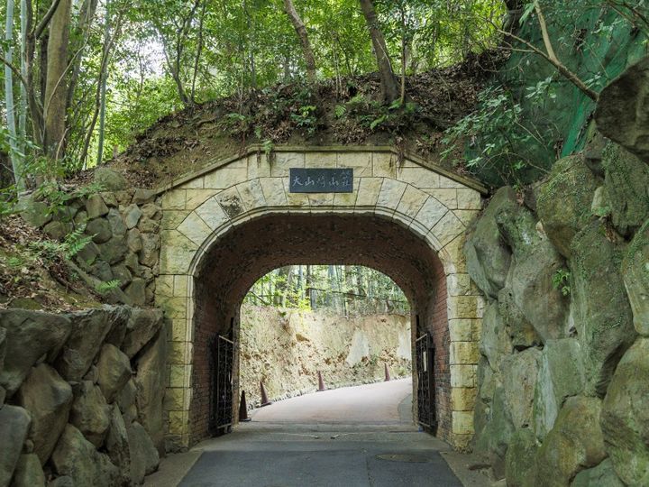 美術館へと続くアプローチにも、建築ファンの心をくすぐる建物があります。まずは、美術館を訪れた人を迎え入れてくれるこちらのトンネル。岩盤をくりぬいたレンガ造りの琅玕洞(ろうかんどう)は、国の登録有形文化財に指定されています。表と裏のデザインが異なるので、訪れた時はその違いを楽しんでください。
