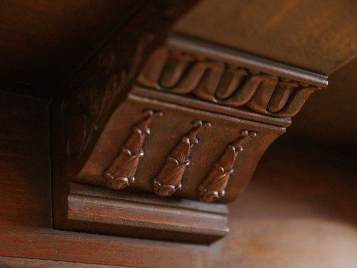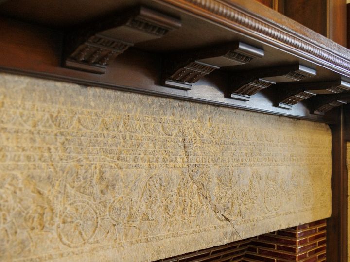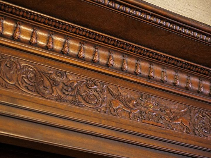 そのひとつが、暖炉や天井に施されたこちらの装飾。山荘がある乙訓地域名産のタケノコの意匠が彫り込まれています。一つひとつが細密に表現されていてかわいらしいですね。