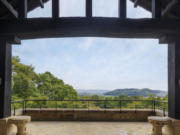 テラスの向こうに広がるのは、空と山、3つの川が織りなす大パノラマ。石清水八幡宮が鎮座する対岸の男山をはじめ、遠く京都府南部から奈良県に連なる山々の雄大な景色を楽しめます。