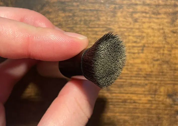 実際に使う時は、一度肌にシェーディングパウダーをのせた後、毛先を軽く拭き取った『コンパクトブラシ』で再びなぞってぼかすと、きれいな陰影ができました。