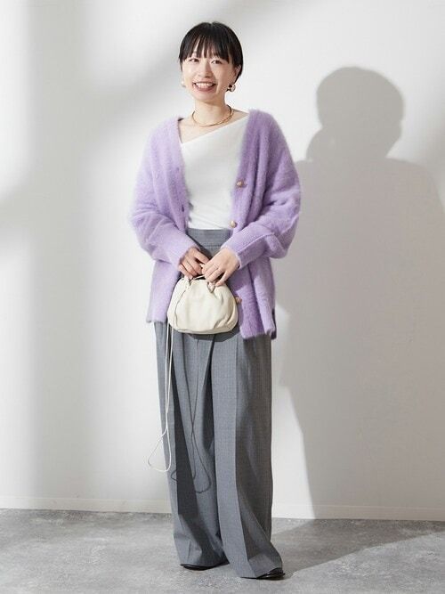 Vネックでゆったりサイズ、さっと羽織れる「ざっくりカーディガン」はあると便利ないちおしアイテム。写真のような、太さが今っぽいパンツコーデや、フェミニンなワンピースの上から羽織ってもよし。柔らかい肌触りでストレスなく着られます。