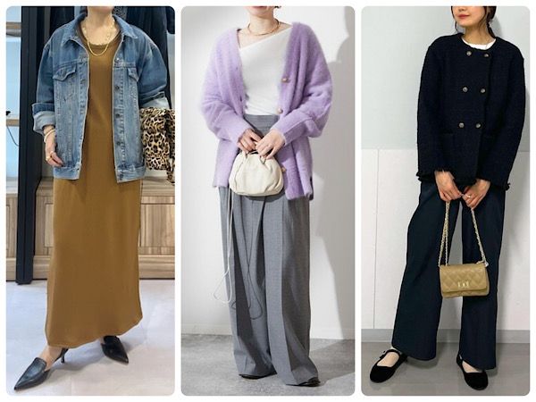 きれいめのパンツコーデから、カラーワンピース、フェミニンなスカートに合わせてミックスコーデなど、幅広い着こなしに合わせられてコスパもよし。