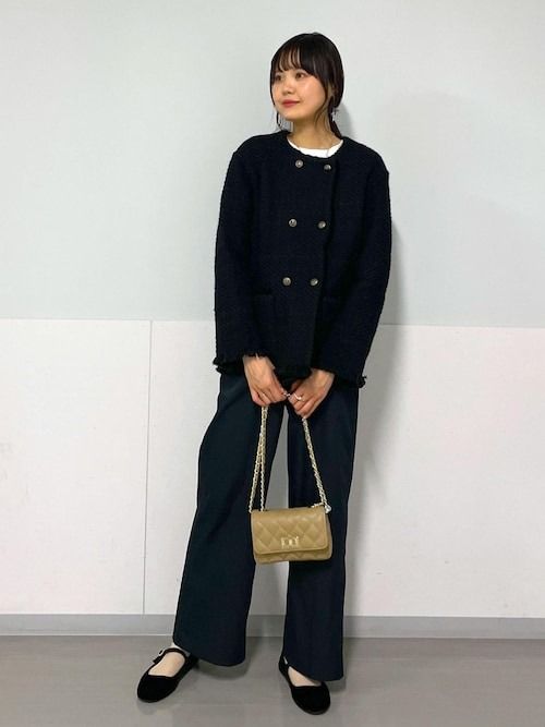 ツイード調素材のアイテムは、今季の新トレンド。フォーマルな印象が強いアイテムですが、今年はかっちりとまとめすぎず、カジュアルダウンしたりと抜け感のある着こなしに仕上げるのがポイント。
