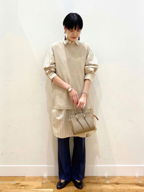 シャツ&ニットベストの組み合わせは、トレンド関係なく定番の着こなしですよね。ベーシックでどんな人でも取り入れやすいコーディネートでもあります。