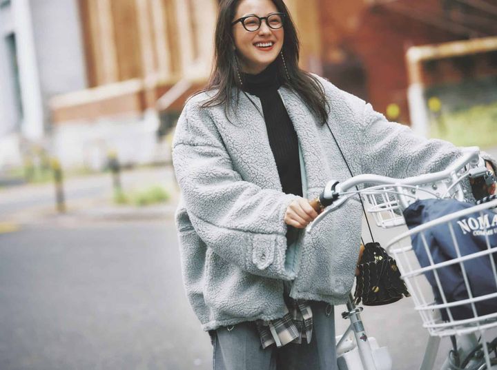ボアブルゾン[FIRST DOWN×styling/]¥42,900(styling//styling/ ルミネ新宿1店)ニット¥16,500(ランバン オン ブルー)パンツ¥9,900(Mila Owen/Mila Owen ルミネ新宿2店)腰巻きしたシャツ¥20,900(アルページュストーリー)バッグ紺¥17,600(NOMADIS/ドレステリア 渋谷スクランブルスクエア店)バッグ黒¥44,000(メアリ オル ターナ/AL Design Inc.)メガネ¥42,900(プロポ/プロポデザイン)ピアス¥33,000(リューク)