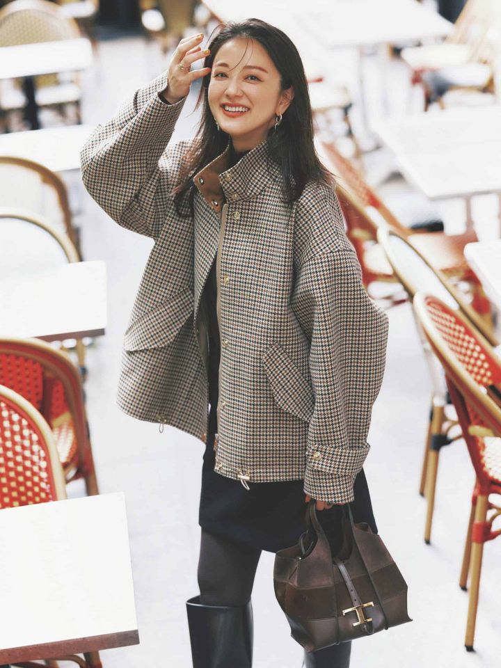 ブルゾン¥198,000(マッキントッシュ/マッキントッシュ ジャパン)ニット¥22,000(HER.)スカート¥19,800(yori)バッグ¥391,600ブーツ¥256,{hlb}300(ともにトッズ/トッズ・ジャパン)ピアス¥52,800リング[左手]¥44,000(ともにブランイリス/ブランイリス トーキョー)リング[右手]¥39,{hlb}600(ミチ ウィルウェイ/フォーティーン ショールーム)タイツ¥2,090(靴下屋/タビオ)