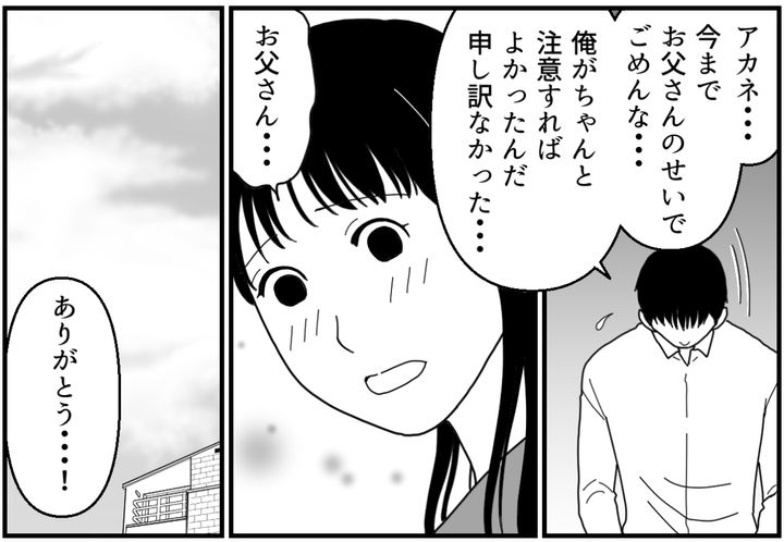 夫も小さいときから姉のホノカさんを優先される扱いを受けてきて、その感覚が当たり前になっていたのでしょう。でも夫は、親としてアカネの味方でいなくちゃいけません。そのことを理解した夫は、最終的にはアカネに向かって「申し訳なかった」と頭を下げて謝罪してくれました。