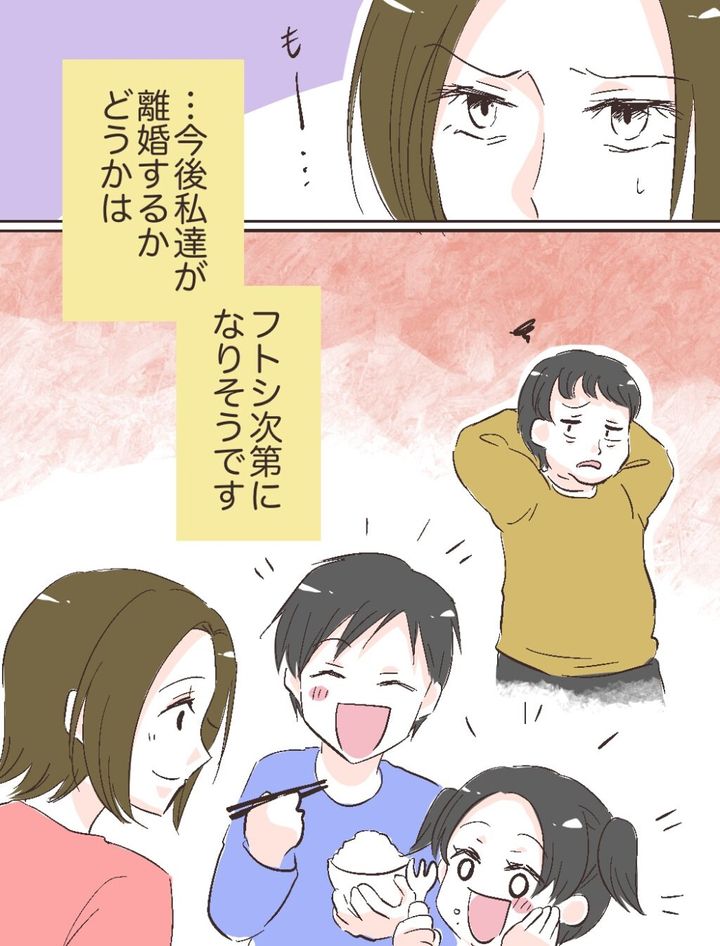 離婚は「今のところ」保留。考えを改めた夫に家族が目を光らせる日々。夫は食い尽くし系|ママ広場マンガ