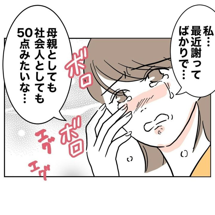 母としても社会人としても50点だ…と落ち込むまいに、鬼ツカさんは「ならば合わせて100点」と言ってくれます。そして、迷惑をかけずに生きている人はいない、とこの時のまいにとって、心が楽になるような言葉を冷静に伝えてくれました。