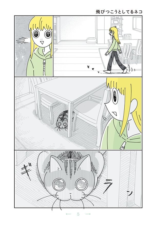 机の下から猫の視線を感じる。足に飛びついてくると予感した飼い主は…/夜は猫といっしょ5(52)