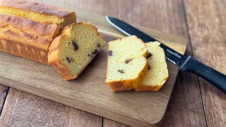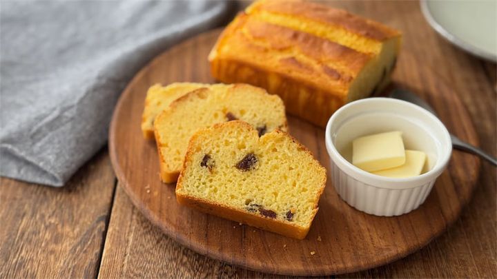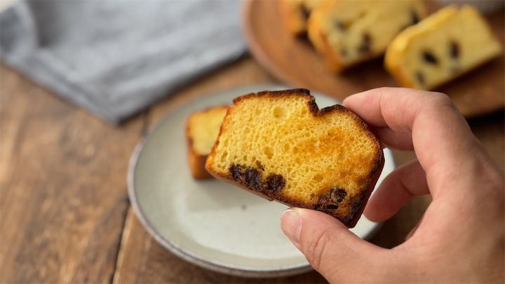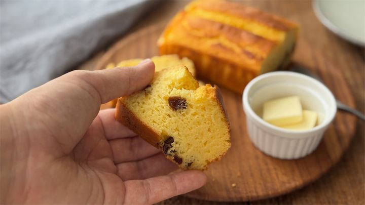 こんにちは!元パティシエで現在は2児の母をしている室崎さゆりです。朝ごはんに時間も手間もかけずに、パンみたいなものが作れないかなあ…という願望から生まれたレシピを紹介します。材料を混ぜ合わせたら、型に流して焼くだけ!発酵、こねは一切不要で、もっちりしっとりなレーズンパン風のできあがり♪おすすめはトースターで焼く食べ方!バターを塗れば…至福のお味ですよ♡