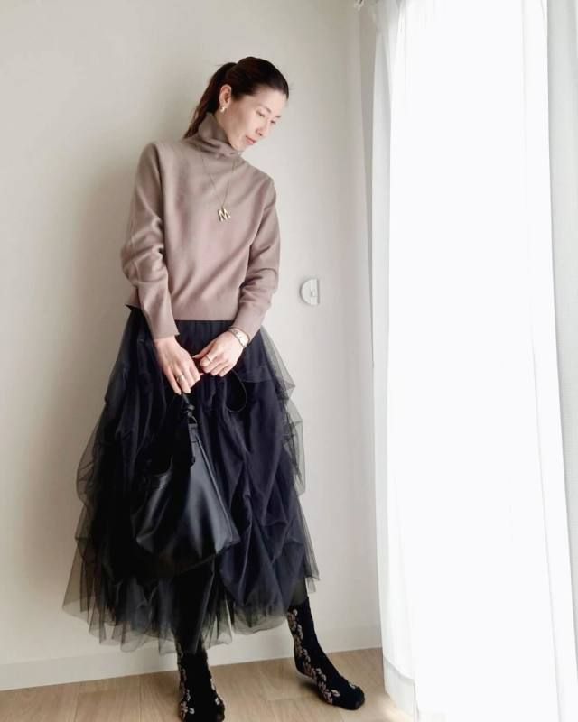 まずご紹介するのは、UNIQLO(ユニクロ)のトップスを活用したおすすめデートコーデ。ボトムスにふんわりスカートを合わせることで、シンプルなのに奥行き感のあるおしゃれな装いが完成します。あえてトップスを引き算することで、大人っぽく抜け感のあるスタイリングになりますよ。