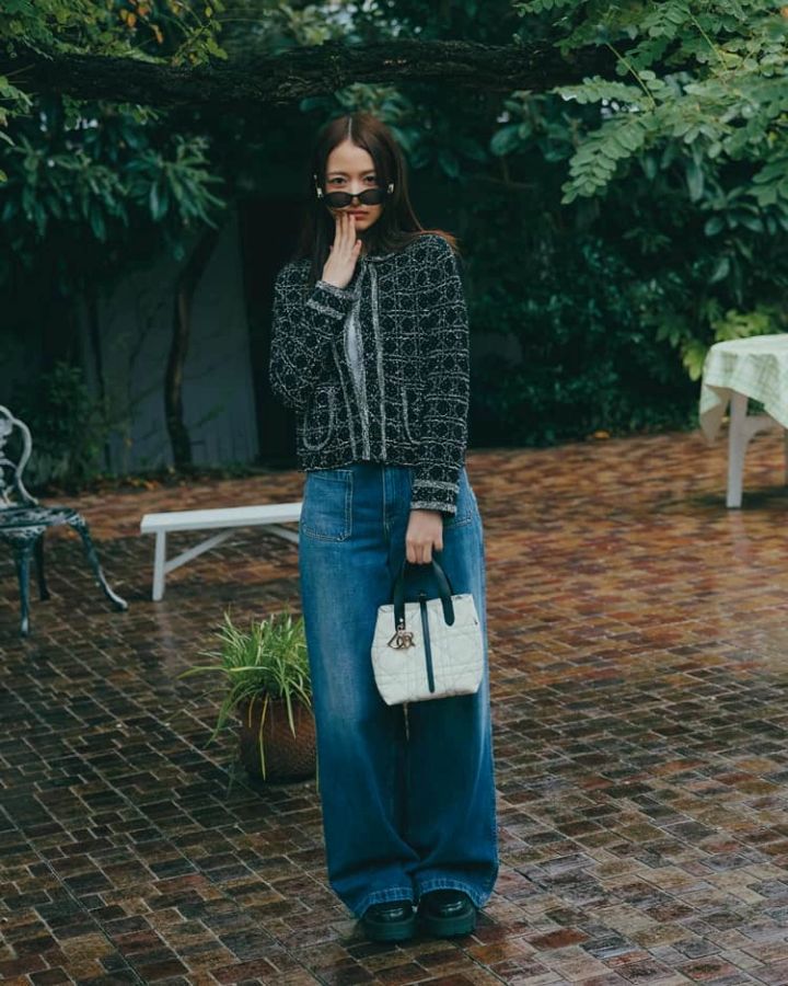 バッグ(18.5×18.5×12㎝)550,000円、ジャケット 540,000円、タンクトップ 140,000円、デニムパンツ 240,000円、サングラス 90,000円、ローファー 170,000円/以上ディオール(クリスチャン ディオール)
