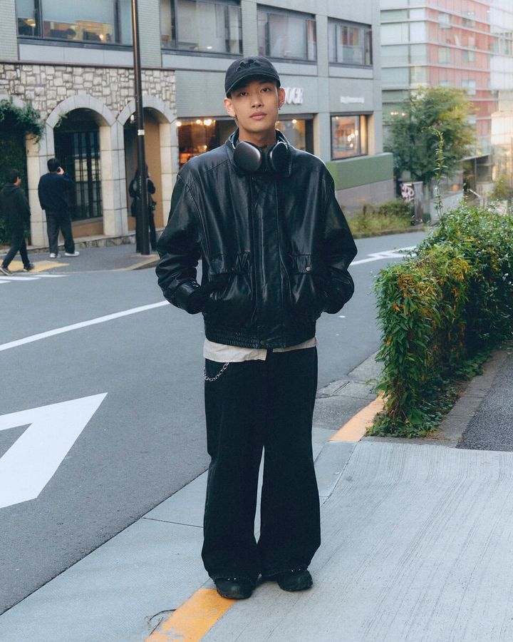 3. 【スナップ】レザー、ウォレットチェーン、バギー…強め要素の“重ねがけ”は黒でシンプルにまとめるのが正解