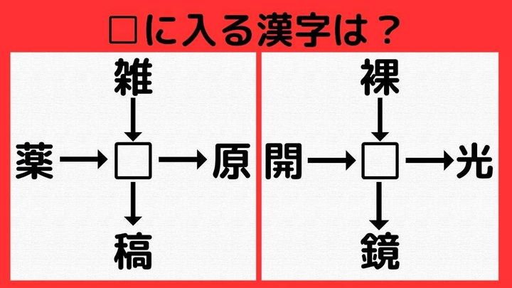 【漢字パズル】ボキャブラリーテスト!雑□、□原、□稿、薬□・・・!?