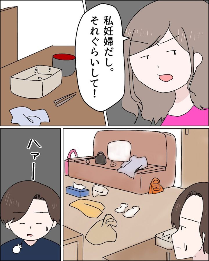 「私妊婦だし。それぐらいして!」とイライラしながらそう言って寝室へ行ってしまいました。