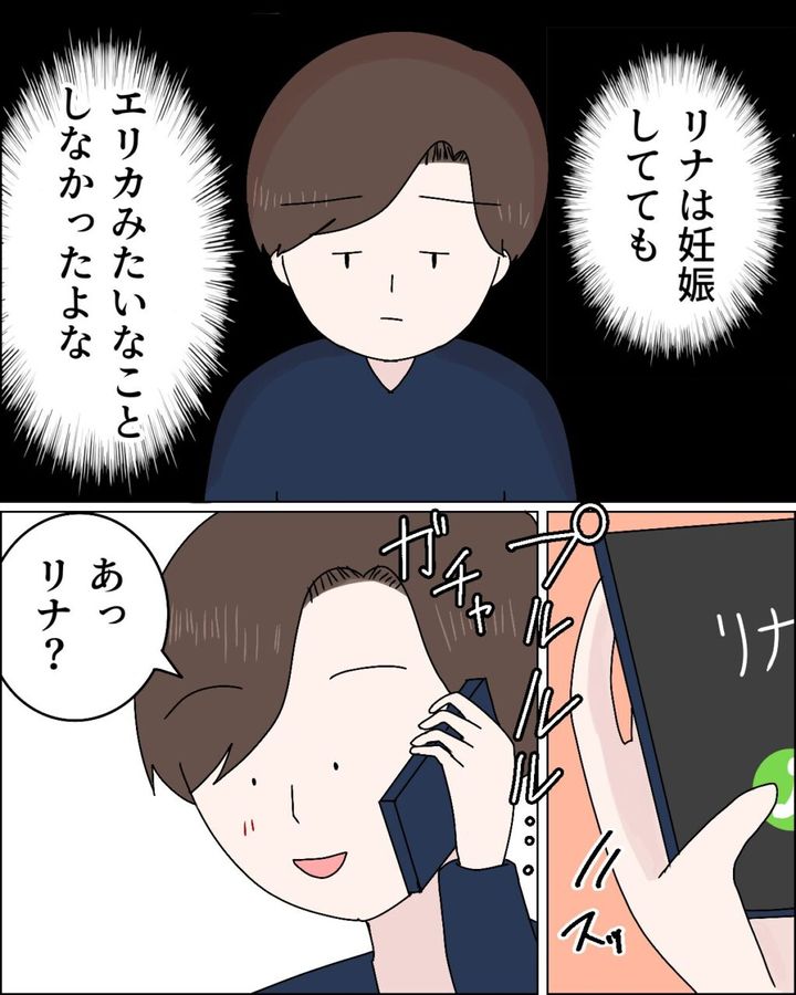 「リナは妊娠しててもエリカみたいなことしなかったよな」と考えていました。きっと俺のことはまだ気にかけているはず。そんな思いからスマホを取り出し、リナさんに電話しました。