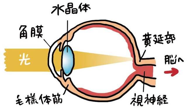 老眼は、目の中の「水晶体」と呼ばれるレンズが年齢とともにかたくなり、ピントを合わせる力が弱まることで起こります。
