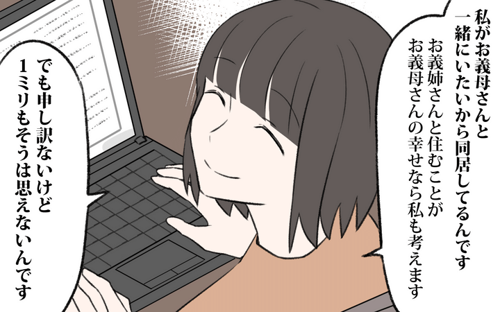 お義母さんがお義姉さんを喜んで迎えいれたのであれば、私は出て行ってもかまわないと思っていましたが、お義姉さんの目的が明らかである以上、それはできませんでした。