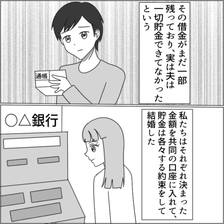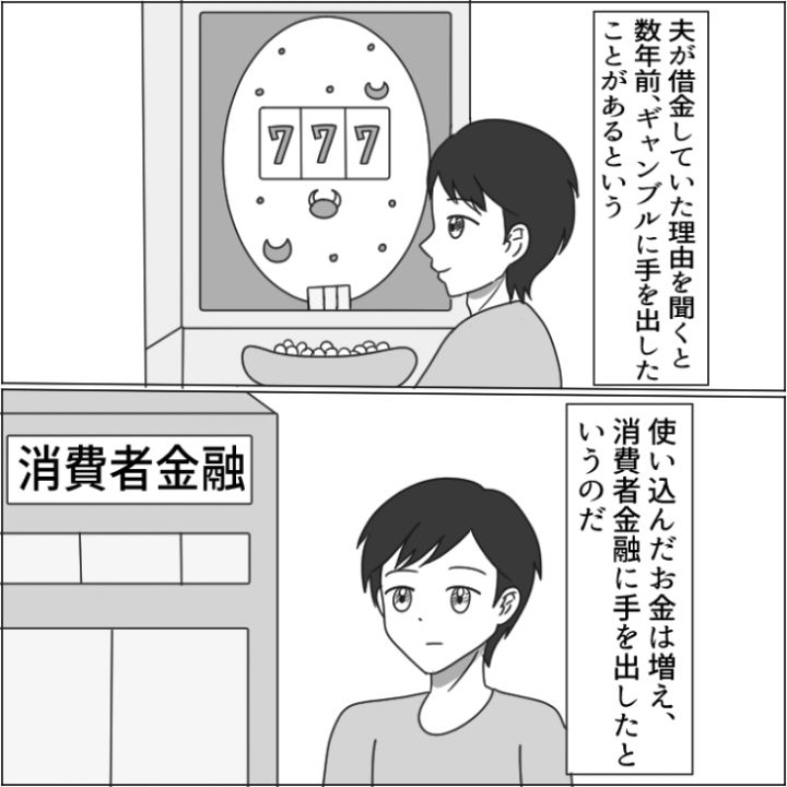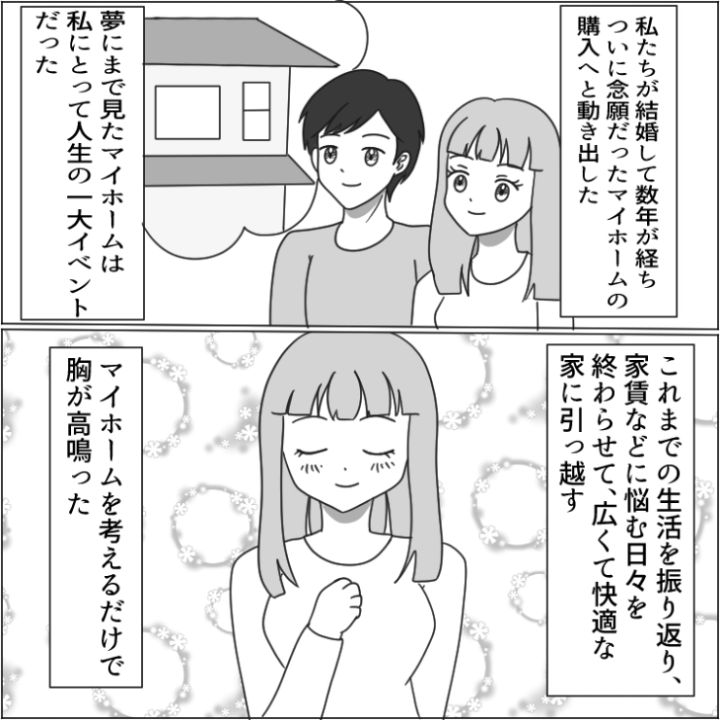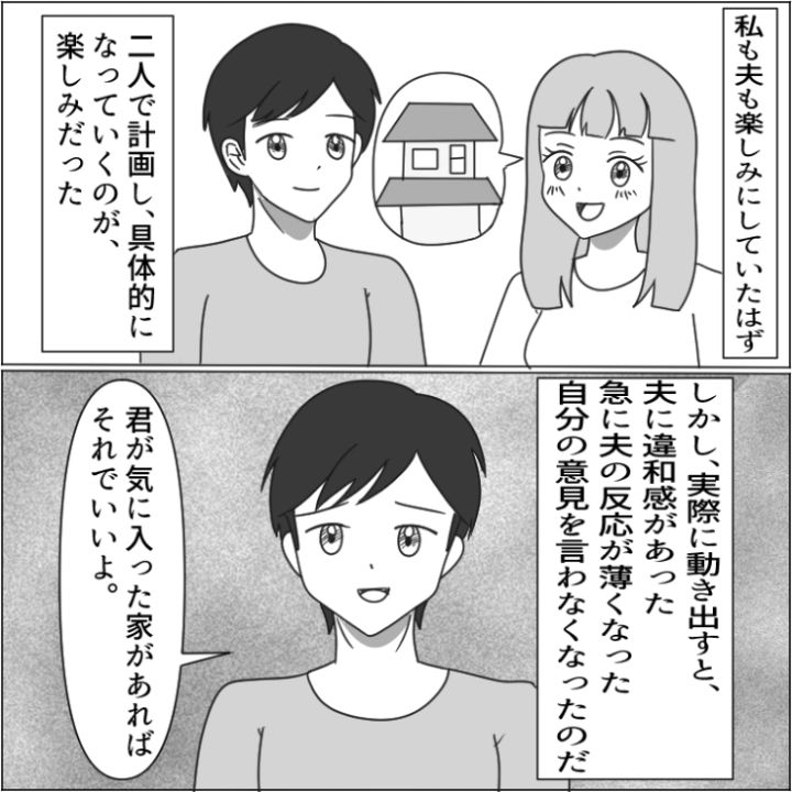 主人公は結婚し、数年がたち、マイホームの購入に向けて動き出しました。しかし、どうも夫の様子がおかしく・・・。