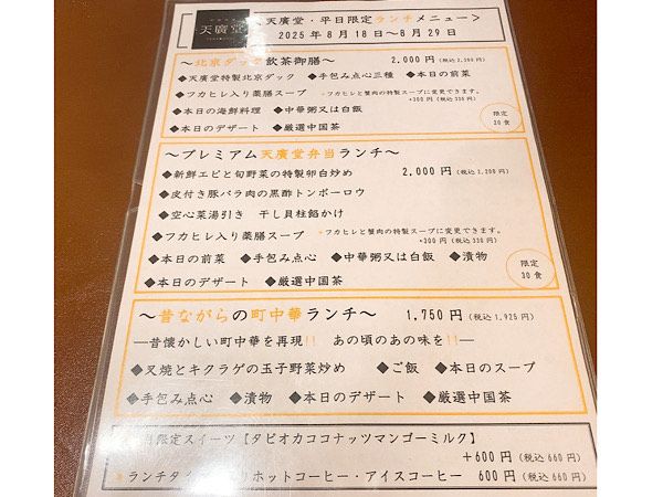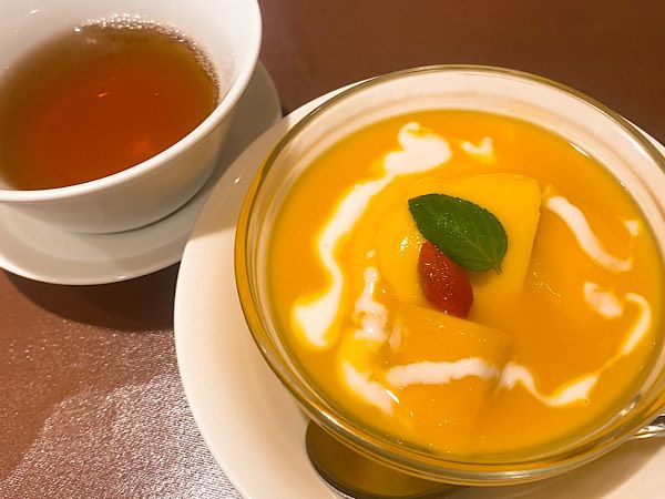 すべてのランチには「本日のデザート」と「厳選中国茶」がセットになります。「本日のデザート」は何種類かある中から選ばせてもらえるのですが、おすすめは「天廣堂特製 塩杏仁豆腐」と「自家製マンゴープリン」です。