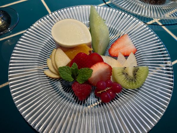 そして、フルーツの盛り合せ。カラフルな果物が一気にテーブルを鮮やかにしてくれます。