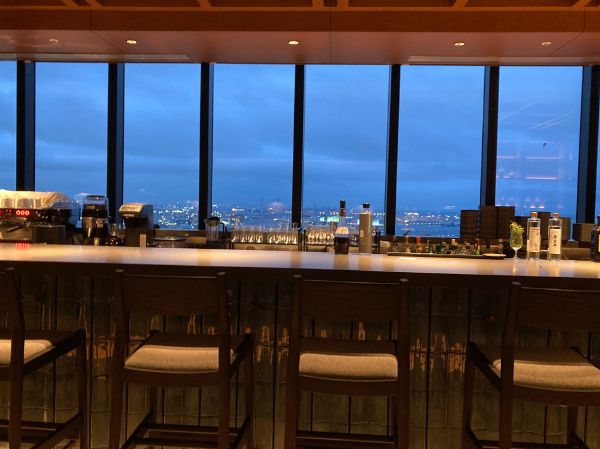 横浜駅西口からペデストリアンデッキで直結の「ザ ヨコハマ フロント」。 42階に上がると、絶景と雰囲気あるラウンジが待っています。