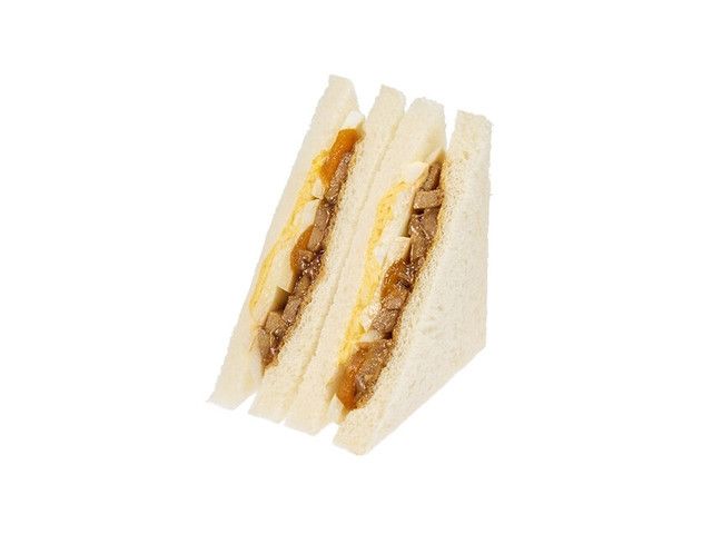 3枚のパンでメンチカツと相性の良いたまごサラダを挟んだ1組のサンドイッチです。