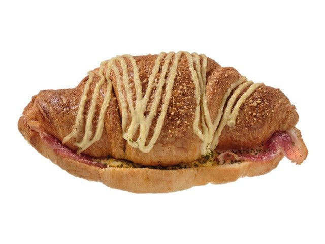 香ばしく焼き上げたクロワッサンにベーコンたまごフィリングを挟み、マヨネーズソースチーズをトッピングして焼き上げた食事として楽しめる惣菜系のクロワッサンです。