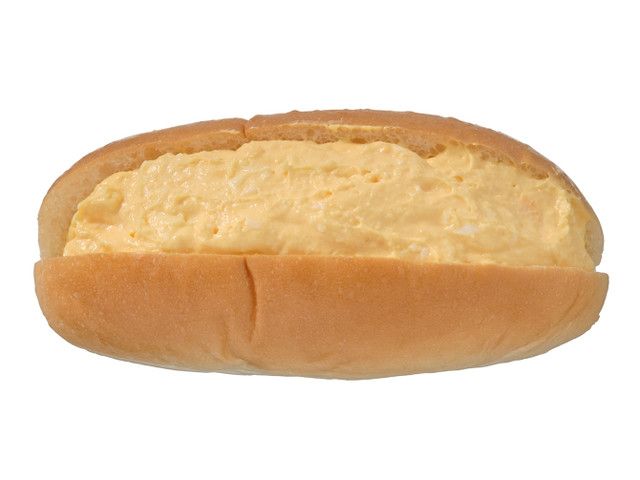 原料高騰により、価格を税抜160円から168円に変更します。コクのあるたまごサラダをコッペパンに絞ったロールパンです。