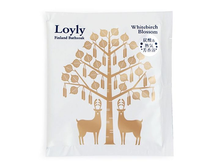 炭酸ソーダがベースの、発泡タイプで、お湯に入れると炭酸ガスが発生。天然保湿成分フユボダイジュ花エキス、シベリアモミ油、ヨーロッパシラカバ樹皮エキス、テレビン油、ホホバ種子油を配合し、肌の潤いを守る。熱気芳香浴 ロウリュ® フィンランド バスソーク 花白樺(はなしらかば) 50g 220円/チャーリー