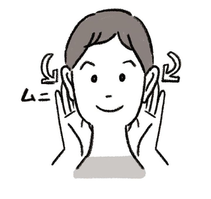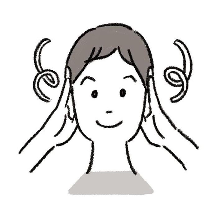 耳全体を手でおおい、ぐるぐる動かします。右まわりでも左まわりでもやりやすいほうでOK。
