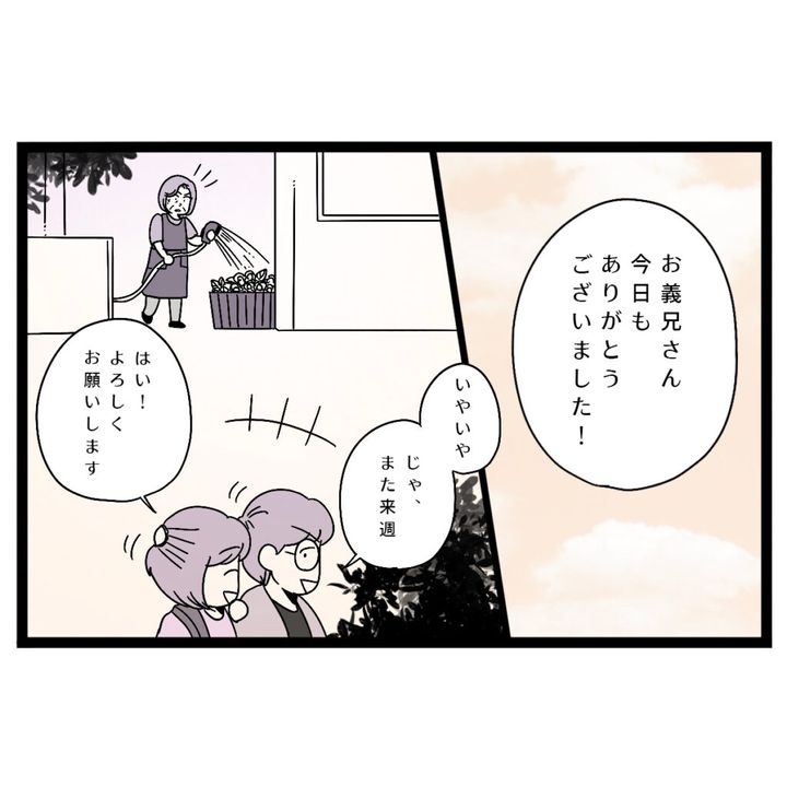 帰宅した私とお義兄さんが「じゃ、また来週」「はい!よろしくお願いします」と話しているのをご近所さんが聞いていたようです。