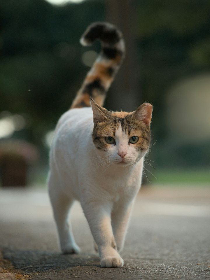 三毛シッポに白猫の体、そしてハチワレの顔。