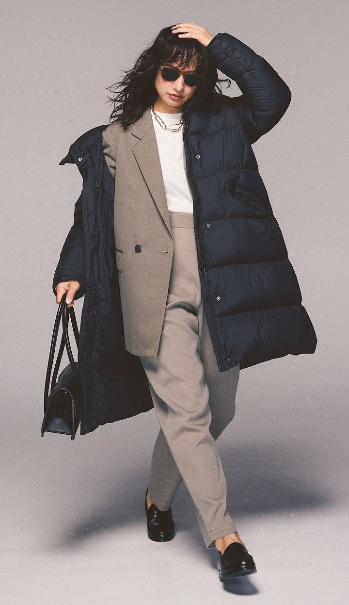 ダウンコート¥97,900(ケープホーン/ティースクエア プレスルーム)ジャケット¥71,500パンツ¥36,300(ともにロエフ/エイチ ビューティー&ユース)タンクトップ¥13,200(スローン/ザ ショップ スローン 新静岡セノバ店)バッグ¥44,000(モフィオラ/アマン)ローファー¥172,700(ピエール アルディ/ピエール アルディ 東京)サングラス¥51,700(アイ{hlb}ヴァン/アイヴァン 東京ギャラリー)ネックレス¥220,000(ブランイリス/ブランイリス トーキョー)